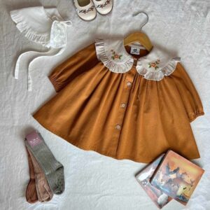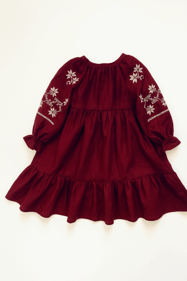 Let your little one twirl in timeless charm with this beautifully embroidered burgundy dress, made from 100% soft cotton for all-day breathable comfort. Designed with gathered detailing, ruffled hem, and flowy long sleeves, this piece blends elegance with everyday ease.