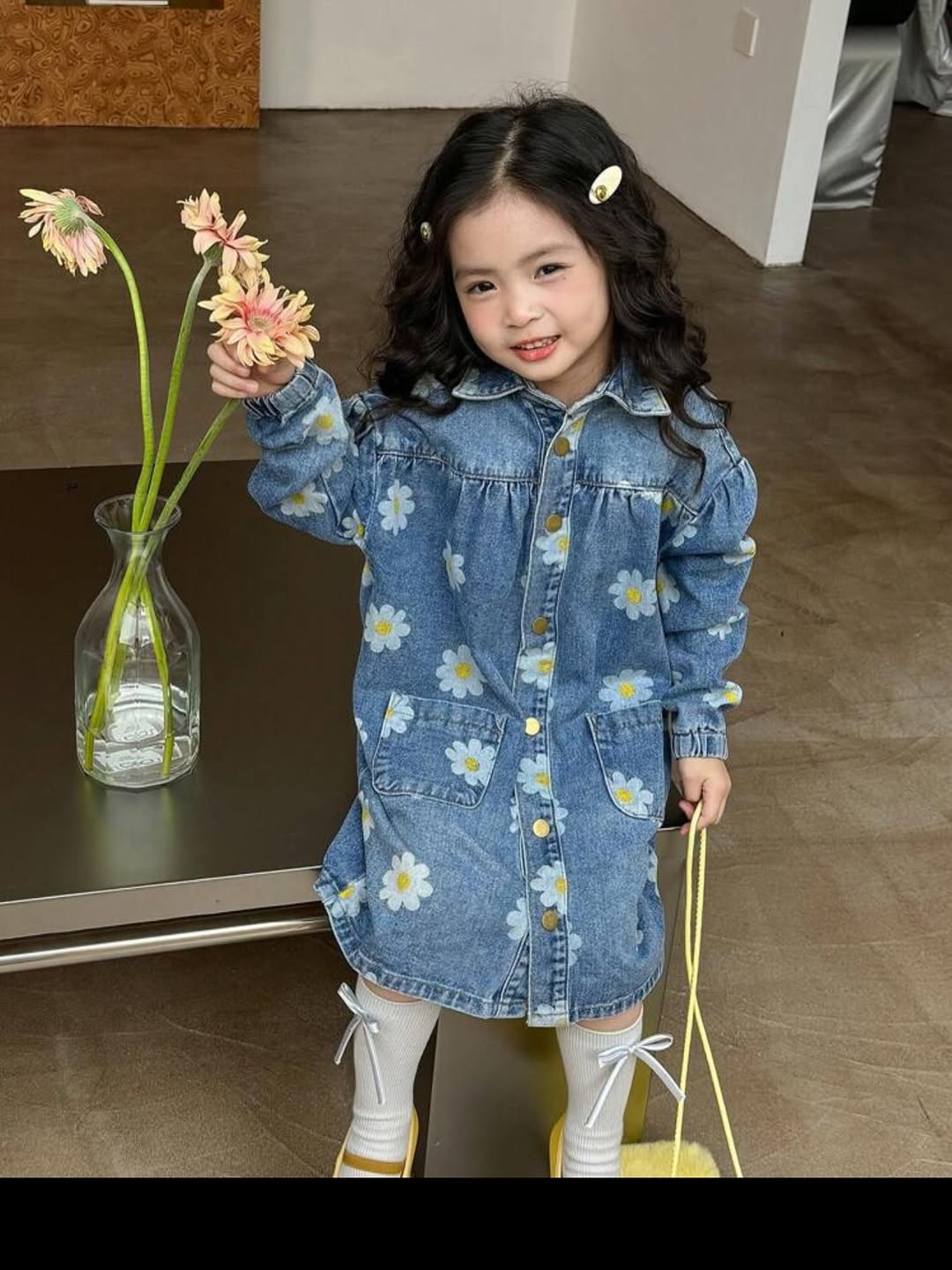 Made from soft, breathable denim, this charming dress features beautifully embroidered moons, stars, and fluffy clouds across the chest and sleeves—creating a dreamy night-sky look that kids instantly fall in love with.