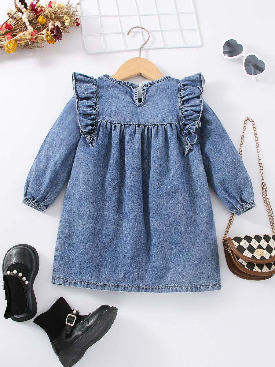 Denim Dress with Ruffle Accents.