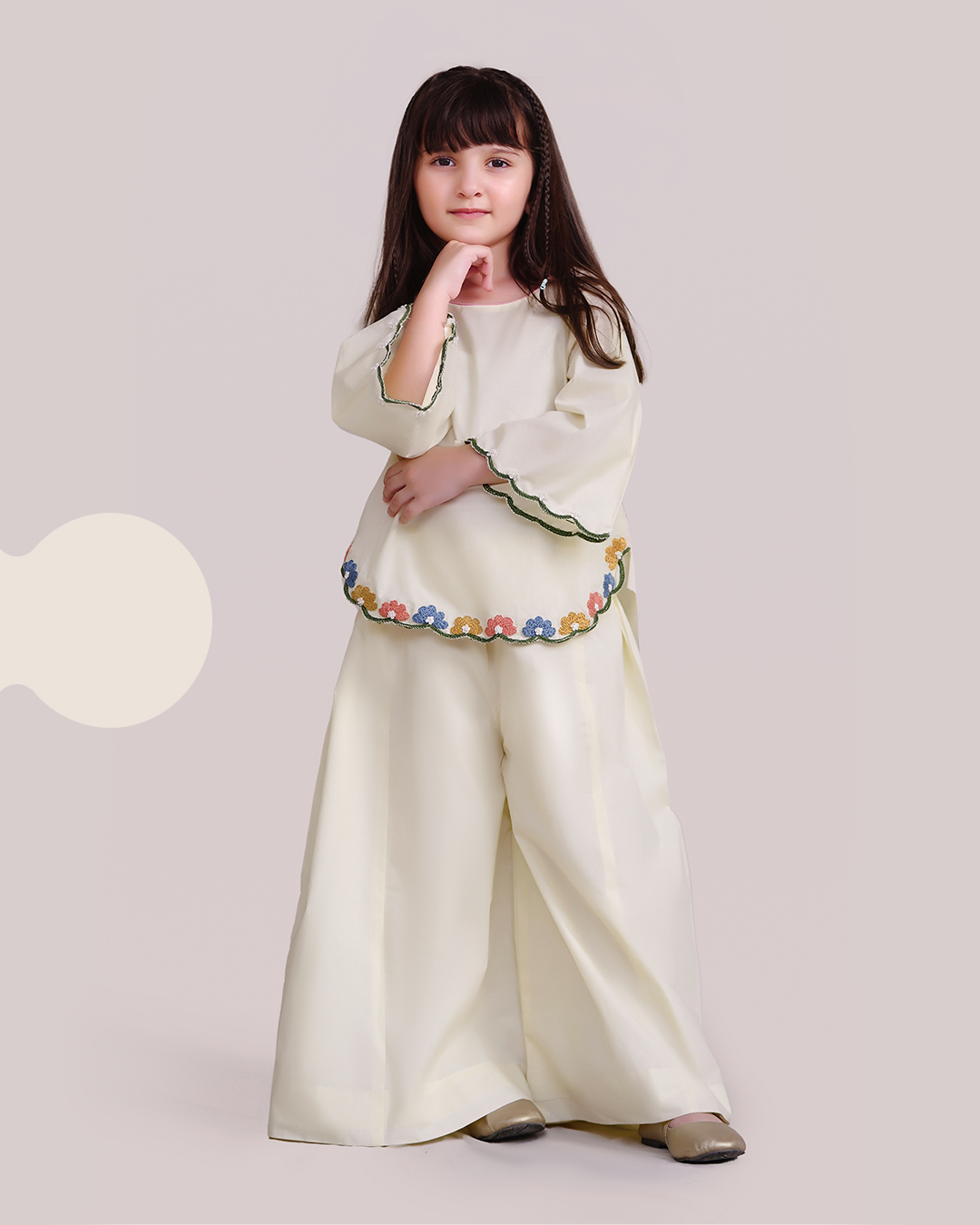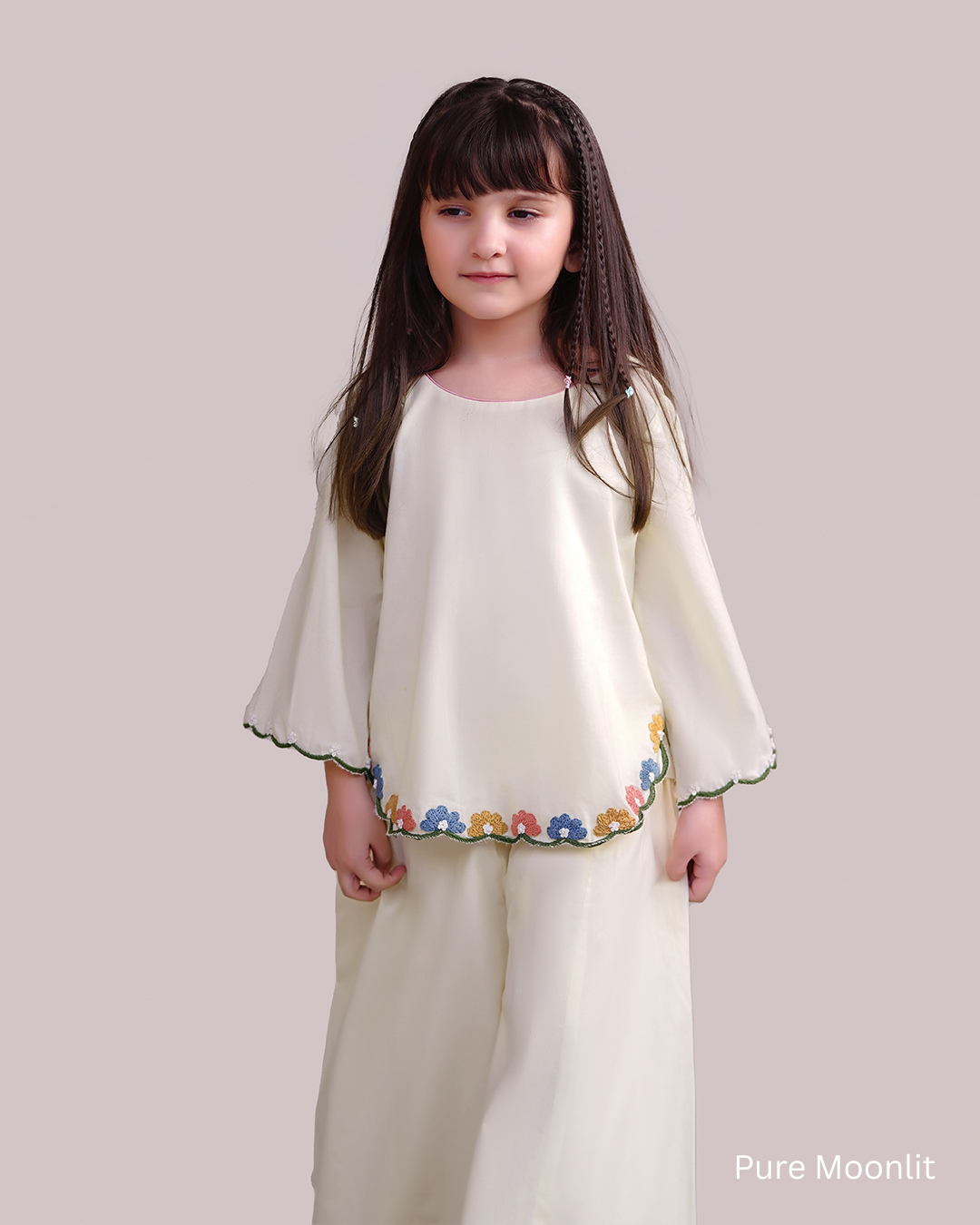 Subtle embroidery along the hem adds a touch of charm, making Pure Moonlit perfect for festive occasions, family gatherings, photoshoots, and special moments.